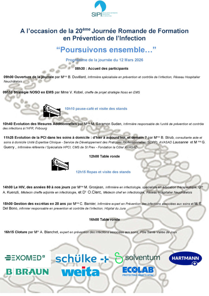 Réservez dès maintenant la date du 12 mars 2026 à l’occasion de la 20e journée romande de formation en prévention de l’infection, à la Marive à Yverdon les bains.